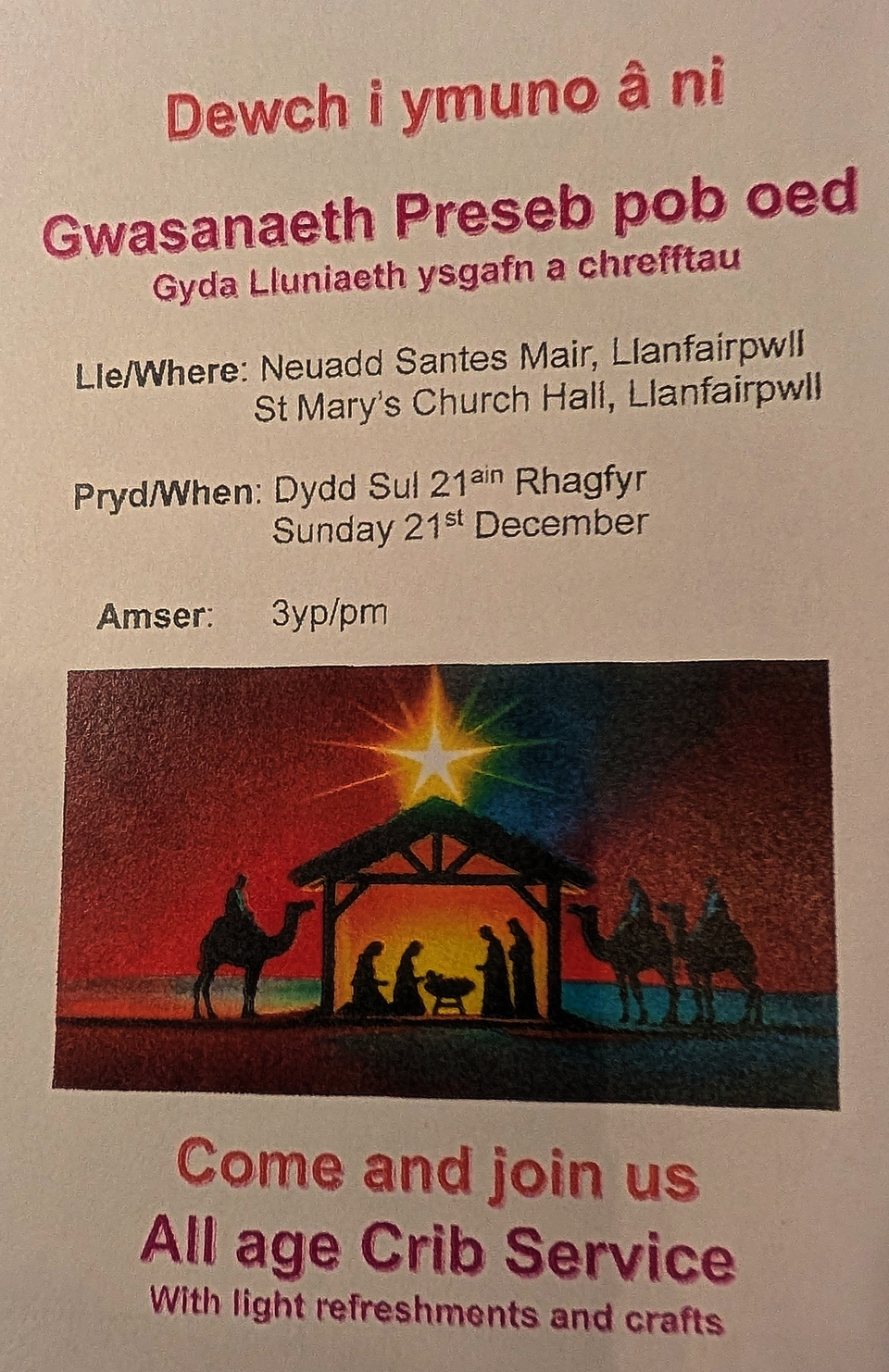 In response to our ongoing Mission work here in Bro Dwynwen, and in conjunction with the Llanfairpwll Community Council, it was unanimously decided to make use of our Church hall buildings as 'Warm Spaces '